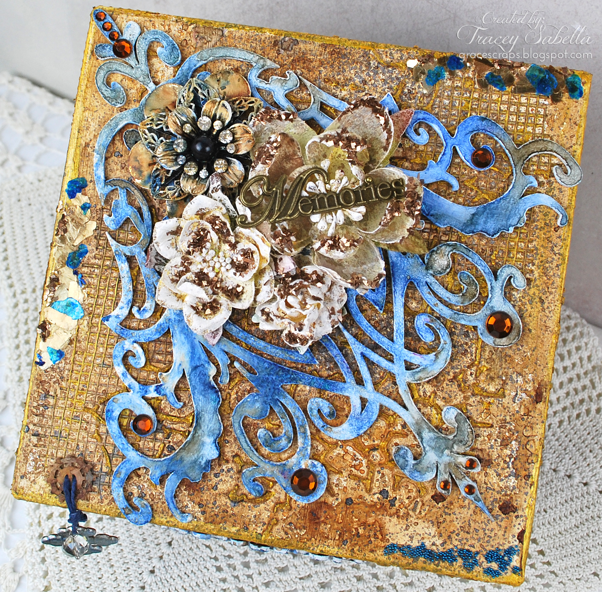 I inked the chipboard with Versamark Watermark Ink. To achieve a little bit of dimension, I sprinkled it with white embossing powder, while the ink was still wet, and heat embossed it with a heat gun.